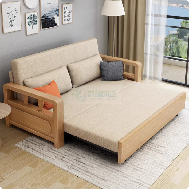 白蜡木实木沙发床现代简约客厅家用沙发原木风冬夏两用沙发拉床