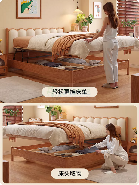 原木风全实木床平移高箱储物床白蜡木1.8双人主卧次卧婚床
