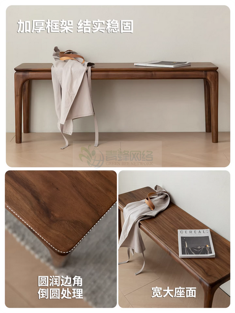 北美黑胡桃木实木长凳餐椅凳子长板凳换鞋凳长条凳条凳实木床尾凳