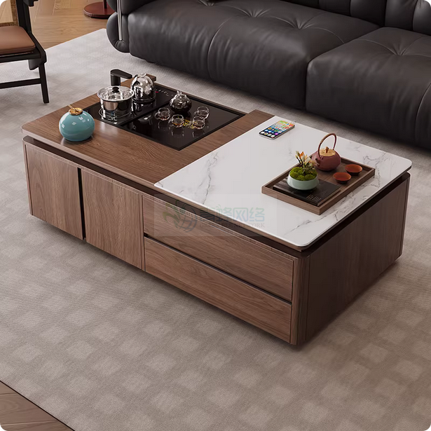 2026新款客厅智能升降功夫茶几全实木岩板简约现代泡茶台储物...