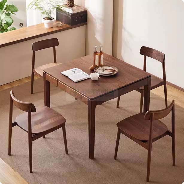 北美黑胡桃实木餐桌现代简约正方形八仙桌小户型家用饭桌