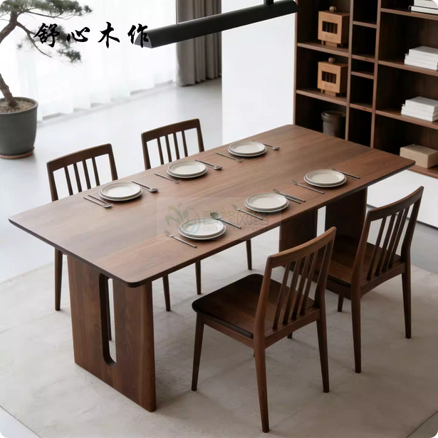 北美黑胡桃木饭桌新中式简约全实木餐桌现代宋式美学橡木茶桌茶台