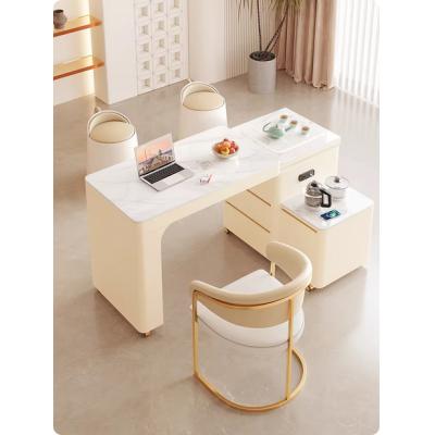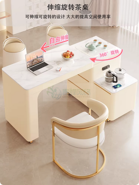 可移动伸缩旋转茶桌奶油风岩板家用小茶台小户型阳台茶桌椅组合