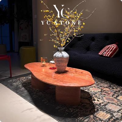 中古风天然红洞石茶几复古高级感家用茶几异形创意设计轻奢咖啡桌